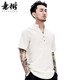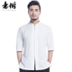 意树2017夏季新款原创中国风男装立领中袖衬衣白色亚麻短袖衬衫男