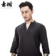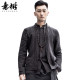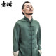 意树中国风男装亚麻衬衫男 长袖原创中式立领青年休闲双层衬衣潮