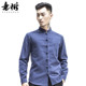 意树休闲民族风衬衫中国风男装简约纯色无领衬衣男长袖圆领衬衫男