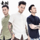 意树春装中国风复古中式立领衬衣盘扣男士长袖休闲青年唐装白衬衫