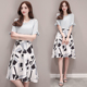 2017年夏季短袖V领纯色上衣+几何图案半身裙时尚甜美百搭套装裙子