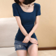 夏季 莫代尔棉U领短袖短T恤 女装紧身双U领低领性感打底衫包邮