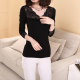 秋季性感莫代尔网纱拼接低领打底衫长袖女修身百搭打底衫901