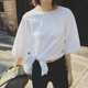 春秋装新款宽松侧面高开叉圆领体恤 韩范中长款纯色休闲短袖T恤女