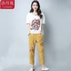 2017夏装新款民族风棉麻短袖t恤女两件套 阔腿裤宽松大码时尚套装
