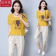 2017夏新款韩版短袖印花t恤显瘦两件套棉麻时尚气质阔腿裤套装女
