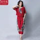 2017夏装新款复古民族风棉麻连衣裙宽松中长款大码印花短袖A字裙