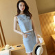 牛仔连衣裙两件套中长款2017夏季新款女装休闲时尚少女无袖套装