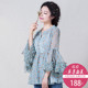 烟花烫SD2017夏季新款女装清新浪漫喇叭袖印花雪纺衫小上衣 玉檀