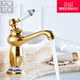 沐歌金色龙头冷热台上下盆龙头铜加高青花瓷台面盆镀金仿古水龙头