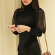 秋冬韩版半高领针织打底衫女套头加厚宽松过膝超长裙毛衣裙连衣裙