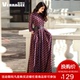 威娅纪连衣裙女夏季长款七分袖印花时尚修身显瘦气质打底复古长裙
