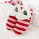快鹿冬季居家居棉拖鞋女情侣防滑室内包跟条纹地板厚底保暖毛毛鞋