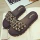 欧美2017夏季新款blingbling水钻凉拖鞋女铆钉厚底松糕一字拖女夏