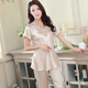 情雪妃春夏短袖丝绸睡衣女士性感蕾丝家居服两件套大码丝质睡衣