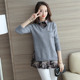 2017春秋季拼接针织衫假两件套修身衬衫领套头毛衣女中长款打底衫