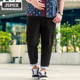 JSMIX大码男装棉麻休闲九分裤潮胖子加大加肥宽松哈伦裤亚麻棉裤
