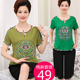 中老年女装夏装老年人60-70岁短袖T恤七分裤两件套妈妈装棉麻套装