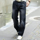 秋冬季男装牛仔裤男士直筒宽松休闲蓝黑色长裤加肥加大码肥佬粗腿