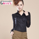 glamourgirl春装 新款长袖衬衫 拼接半高立领纯色上衣 大码ol衬衣