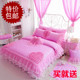 韩版全棉粉红公主风系列可爱蕾丝花边婚庆床裙床上用品四件套包邮
