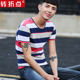 转折点夏季圆领男士短袖T恤条纹修身韩版打底衫潮印花男t恤