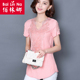 雪纺衫女2016夏装新款宽松上衣V领短袖大码绣花拼接蕾丝打底衫