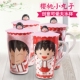 樱桃小丸子创意可爱大水杯带盖带手柄大容量陶瓷马克杯子