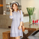 汐悠姿大码女装夏季新款条纹收腰a字裙胖mm立领衬衫式连衣裙6154