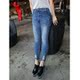 汐悠姿2017大码女装弹力小脚九分裤胖mm不规则裤脚毛边牛仔裤8167