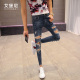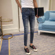 艾堡尼 潮流个性猫须抓破洞牛仔裤男时尚韩版修身补丁小脚铅笔裤