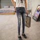 艾堡尼韩版男牛仔裤潮流个性破洞小脚裤 春季新款修身弹力铅笔裤K