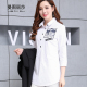 中长款衬衫女七分袖休闲百搭宽松2017春装新款韩版大码纯棉白衬衣