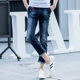 春秋季男士九分裤破洞牛仔裤男青少年修身小脚哈伦裤男薄款9