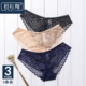 3条装| 夏季蕾丝透明透气性感内裤女棉档中低腰女士小清新裤头