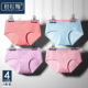 4条装| 无痕内裤女纯棉裆可爱中腰女士裤头棉质面料三角裤春夏