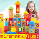木制大块积木玩具算数积木1-3岁儿童早教益智玩具城堡桶装