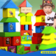 木制大块3-8岁启蒙早教益智玩具 100颗动物数字字母桶装积木