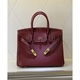 欧美经典高品质定制款铂金包荔枝纹头层牛皮女包大包酒红铂金