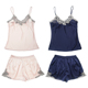 MRS SONG薄款V领吊带蕾丝边粉色性感睡衣女夏睡裤家居服套装
