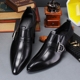 欧美新款鳄鱼纹男鞋真皮压花男士商务正装皮鞋英伦尖头鞋搭扣婚鞋