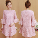 孕妇装春装新款连衣裙春夏季百搭中长款修身中袖镂空蕾丝孕妇上衣