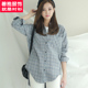 纯棉格子衬衫 女长袖韩版春秋休闲修身衬衣磨毛大码学生寸衫外套