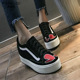 满400减200秋季新款女鞋真皮系带厚底松糕鞋内增高休闲高帮鞋欧美