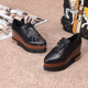 欧洲站2017春季新款女鞋真皮刺绣系带厚底松糕鞋休闲内增高单鞋潮
