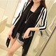 2016春夏新款中长款开衫外套女 竖条纹雪纺莫代尔风衣燕尾西服款