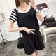 2017夏季休闲女装学院风条纹打底衫套装潮上衣圆领宽松短袖两件套