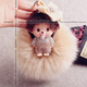 蒙奇奇汽车钥匙扣 创意女士钥匙挂件 满钻礼品钥匙链兔毛球挂件