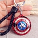 旋转美国队长盾牌皮绳汽车钥匙扣 男士金属复仇者联盟钥匙链挂件
