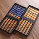 瓷航竹木筷子日式鱼筷 5双礼盒装 生漆环保筷健康竹碳化木筷